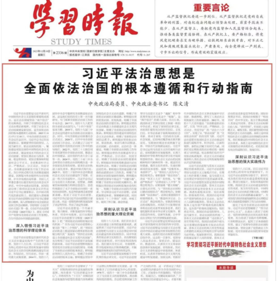 中央政治局委员、中央政法委书记陈文清:习近平法治思想是全面依法治国的根本遵循和行动指南